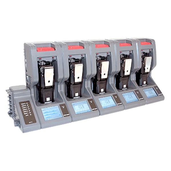 Up to 10 calibration stations can also be connected to one PC for automated charging, calibration, bump testing and archiving of data. Even if instruments are turned off, automated routines will power up the instruments and run as scheduled. All data collected from the PC Controlled software can also be centralized in one network location accessible by anyone with the PC Controlled software with access to the network location.